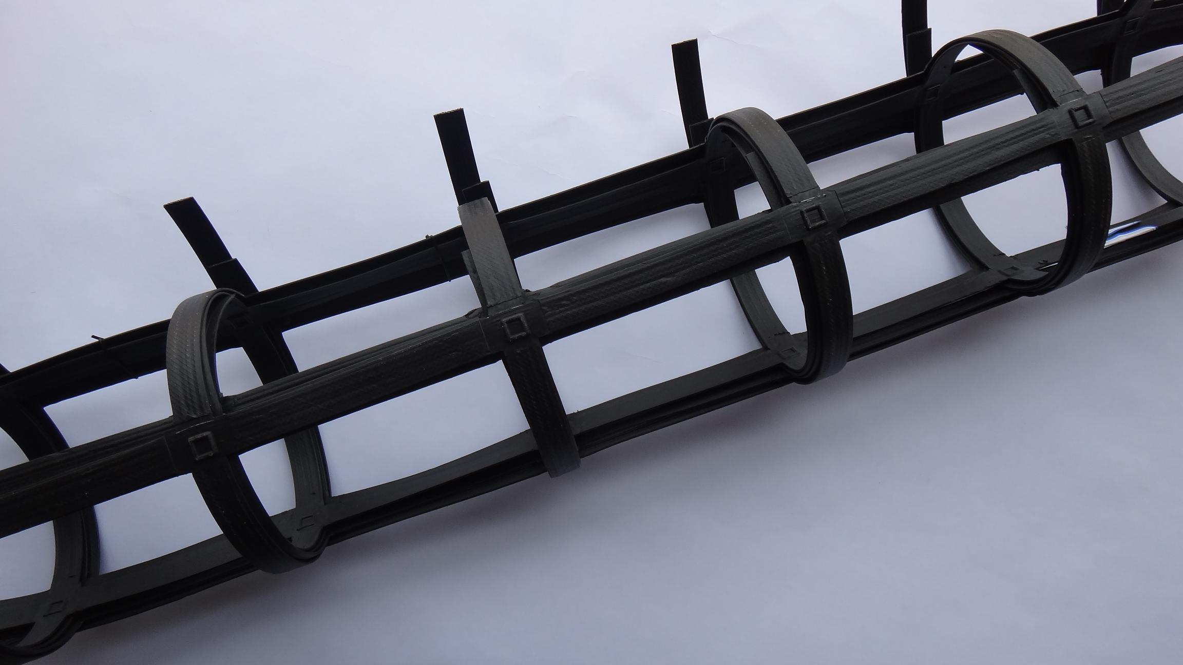 钢塑复合91视频直播APP格栅以高强钢丝(或其他纤维),经特殊处理,与聚乙烯(PE),并添加其他助剂,通过挤出使之成为复合型高强抗拉条带,且表面有粗糙压纹,则为高强度加筋91视频直播APP带。由此单带,